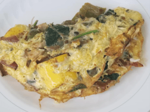 your choice of Vegetable, Lorraine: Bacon, Spinach and Swiss Cheese or Spinach and Mushroom