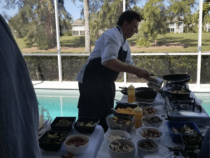 Chef attended and display of made-to-order waffles or Pancakes from gourmet ingredients; Chocolate Chips, Fresh Strawberries, Sliced Bananas, Maples Syrup and Fresh Whipped Cream