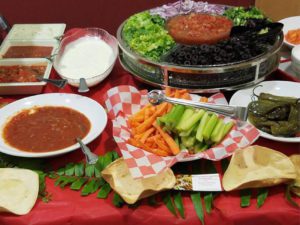 Marinated Chicken Breast – Sautéed Peppers & Onions – Sour Cream – Guacamole – Pico De Gallo – Shredded Lettuce – Shredded Cheese – Flour Tortilla – Soft & Hard Corn Taco Shells – House-Made Salad Bowls & Tostada Shells – Spanish Rice – Refried Beans