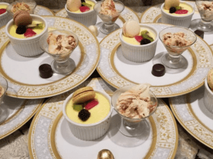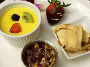 Select 3 Premium Desserts Plated from the list following: Gelato, Wild Berry Compote, Crème Brule, Cheese Cake with Cherries, Macaroons, Norman Love Premium Chocolates, Mini Cannoli, Fruited Brule, Cookies, Brownies, and more and ask Chef Ron for additional options.